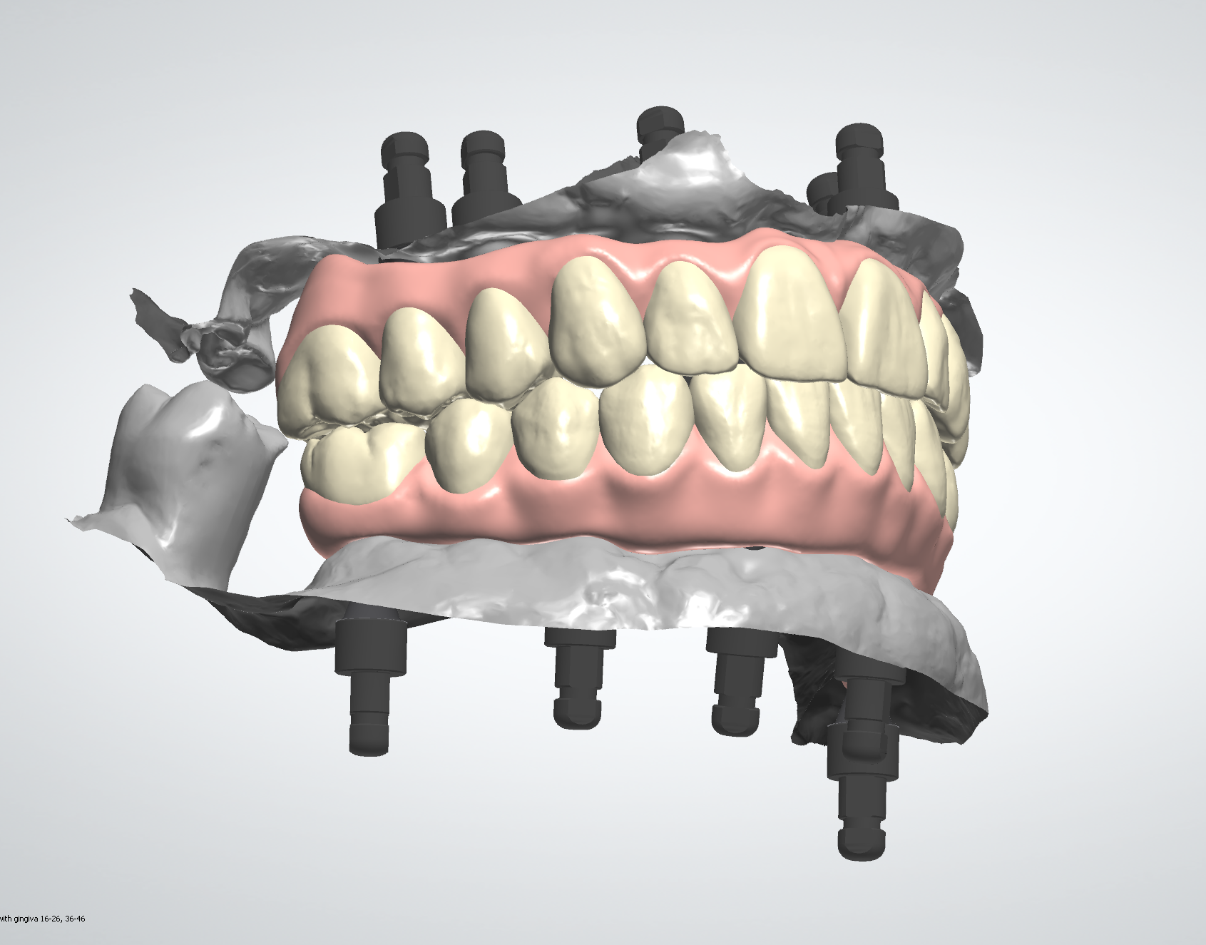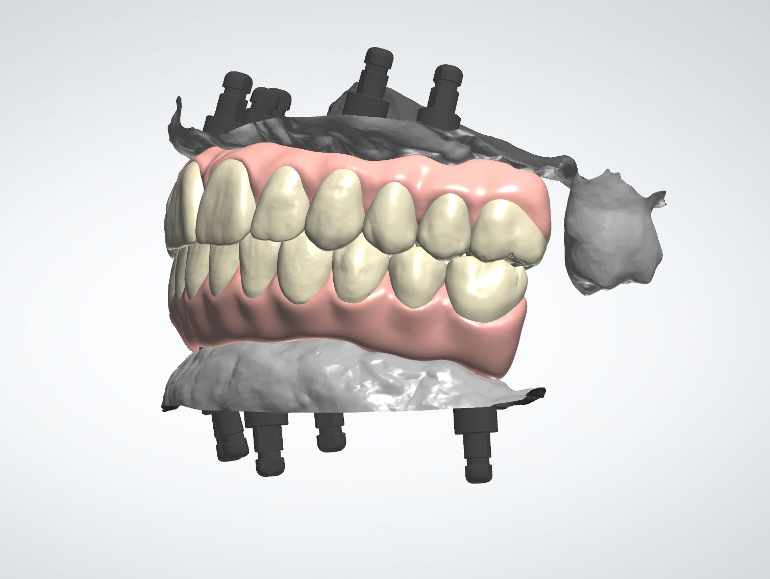 Precise digital design of full-arch All-on-X restorations using 3Shape software. The service includes careful analysis of implant positions, occlusion, and prosthetic space to ensure a functional and aesthetic result while respecting laboratory protocols.